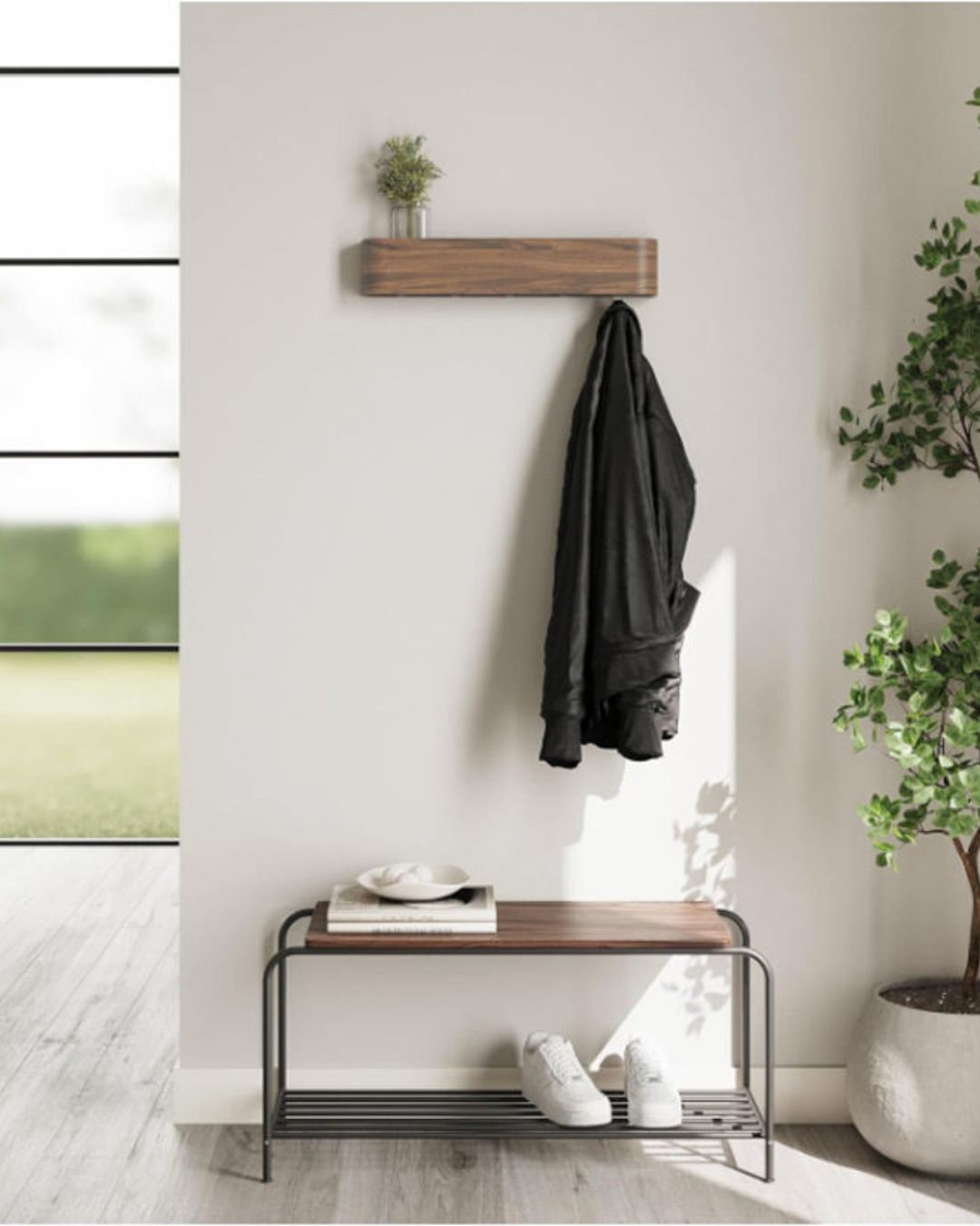 Apportez une touche chaleureuse et minimaliste à votre intérieur avec ce porte-manteau mural en bois au style scandinave. Doté d’une étagère discrète et de crochets intégrés, il permet d’organiser manteaux, sacs et accessoires tout en offrant un espace idéal pour poser objets décoratifs ou essentiels du quotidien. Son design épuré s’intègre parfaitement dans une entrée, un couloir ou une chambre.
